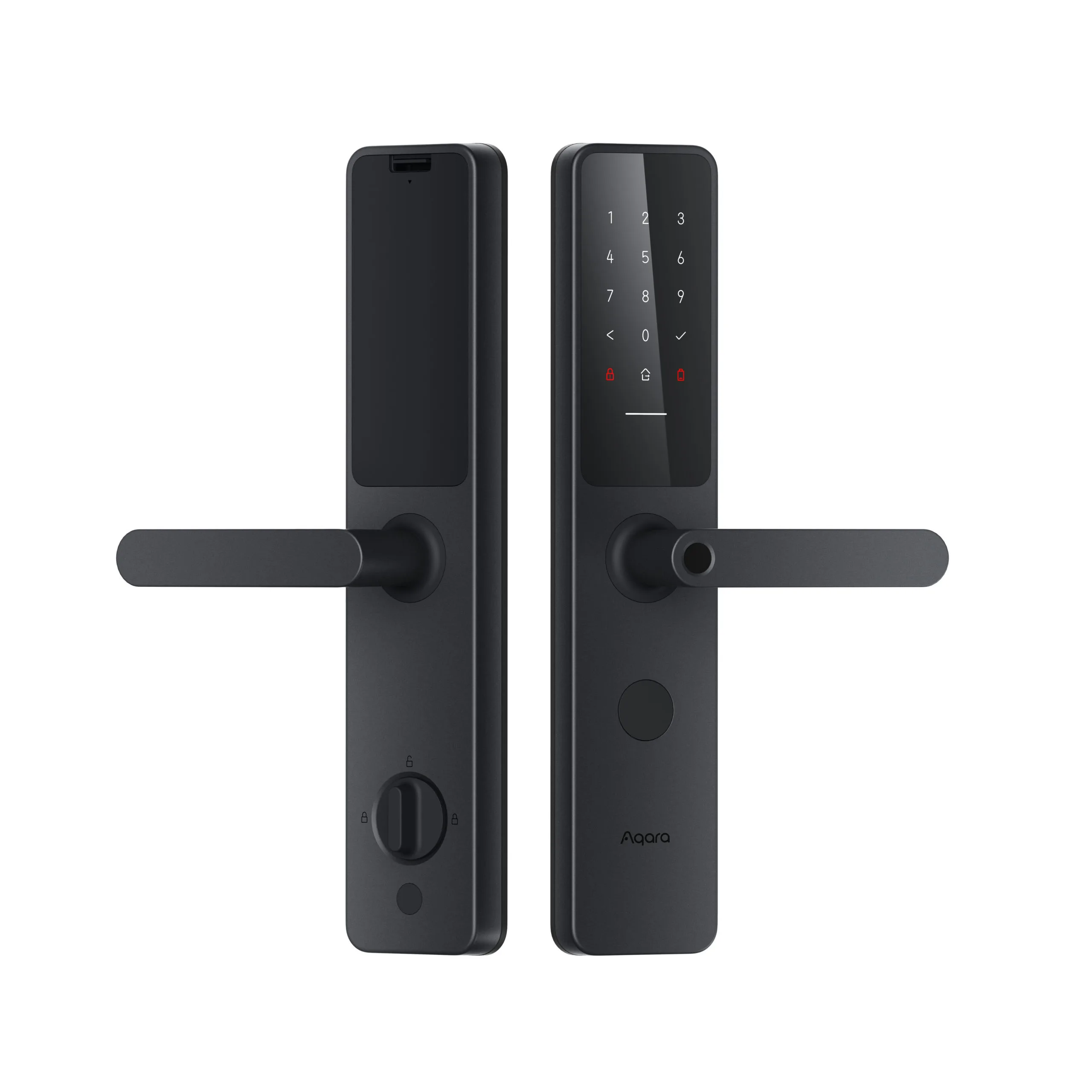 Aqara Door Lock A100 Zigbee Edition has a non-marking aluminum body. Will warn you about a hacking attempt and multiple incorrect password attempts. The device has a hidden keyboard - to activate it, you need to touch the touchpad. And the fast, ergonomic fingerprint reader is integrated into the handle so that your thumb naturally touches it when opening the door.