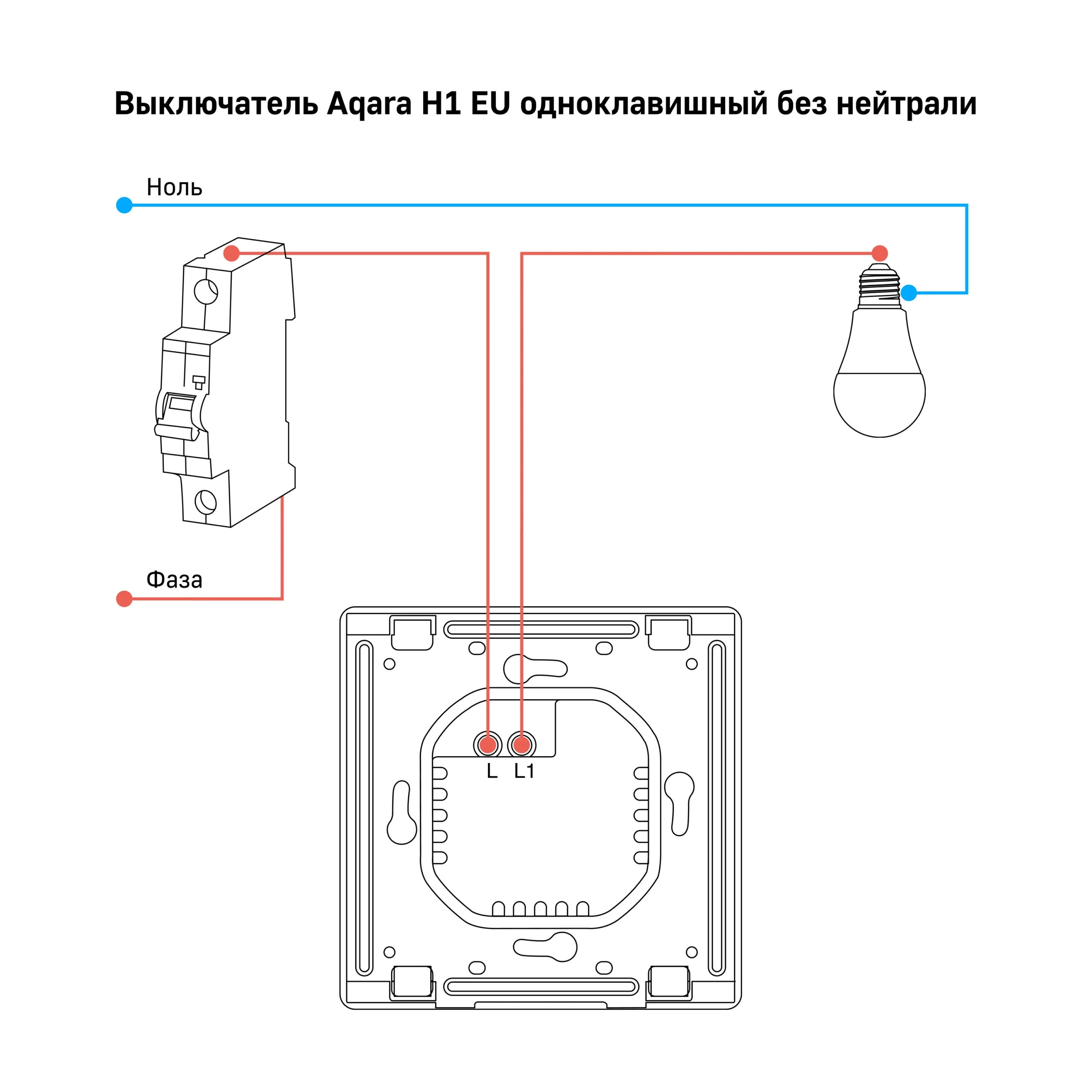 Smart wall switch without neutral Aqara H1 White 1 key