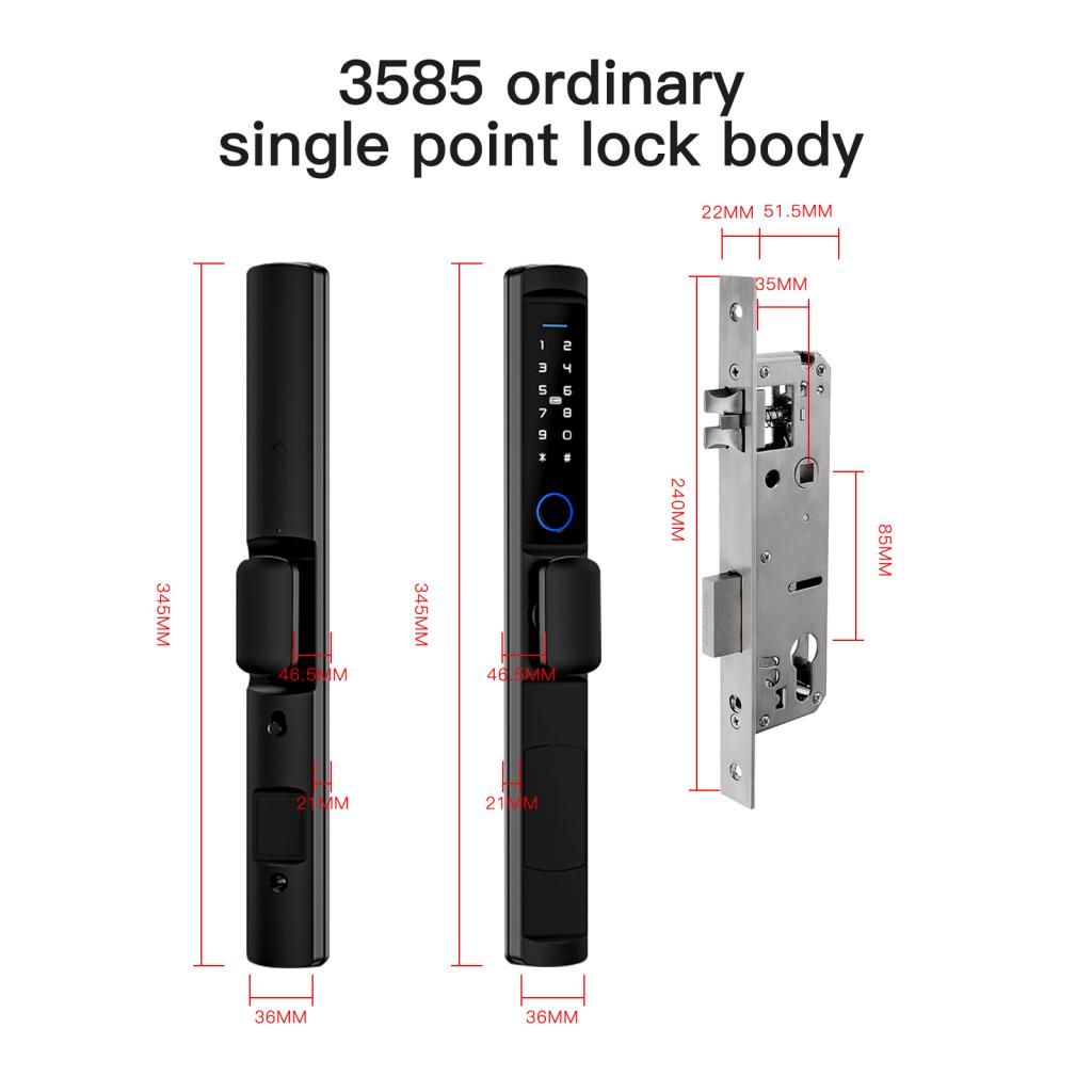 The smart sliding door lock features an ultra-thin body that is only 2.2cm thick, making it compatible with 95% of door types, including narrow frame models. Ideal for outdoor installation - thanks to protection from moisture and dust according to the IP66 standard, the lock works reliably in all weather conditions. The device supports several unlocking methods: by password, fingerprint, access card or through a mobile application.