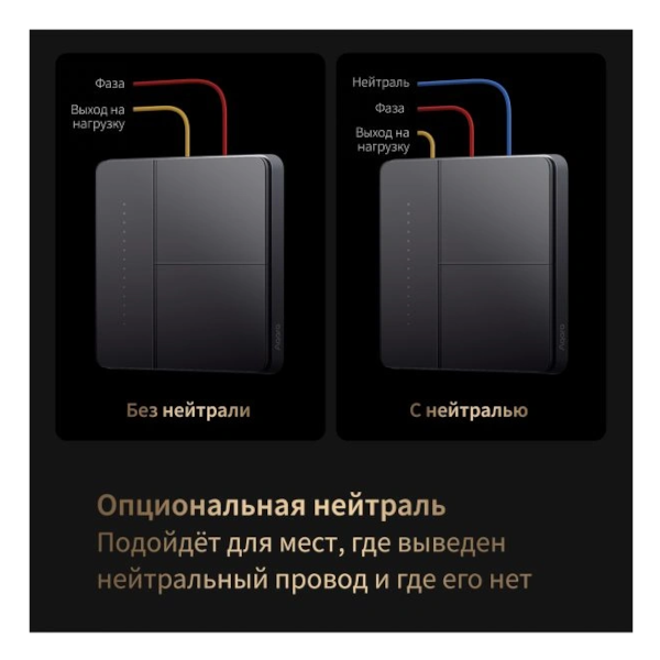 Nolinchi chiziqni kalitga ulash majburiy emas, lekin uning funksionalligini kengaytiradi. Neytral liniyani ulashda energiya iste'moli monitoringi mavjud va minimal yuk talablari yo'q. Neytral chiziq bo'lmasa, minimal yuk 3 Vtni tashkil qiladi.